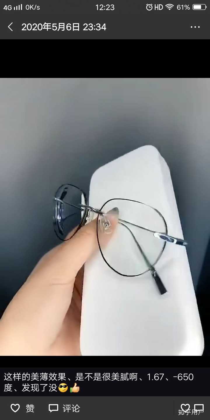 “换了1.74美薄+钛架,1600度镜片终于从‘啤酒瓶’变成‘高脚杯’!侧面看只有微微凸起,同事都说隐形了!”🍷